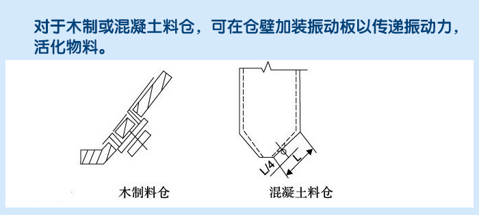 5、如安裝兩臺以上,可在對稱面的不同高度安裝,對于木制或混凝土料倉,可在倉壁加裝振動板以傳遞振動力,活化物料。