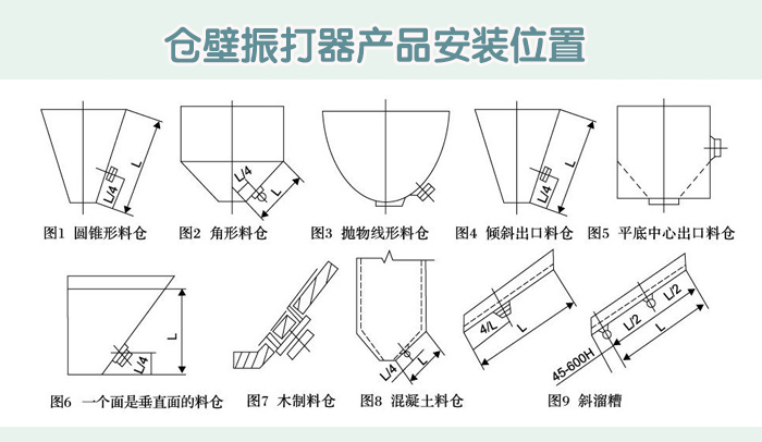 7、如果將兩臺倉壁振打器對稱按裝,應上下錯開50~100cm,以避相互干擾。